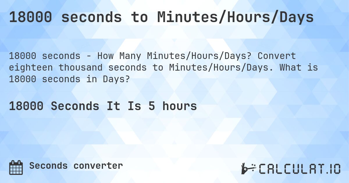18000 Hours To Days - Explore how to write 18000 in words with fun math activities, teaching kids the simplicity of large number counting. Write 18000 in english words how to write 18000 in english words? Learn how to write 18000 in words in both indian and international number systems. 18000 in words in english is written as eighteen. Easily convert any given number to words in us english and other languages. In this article, we will learn how to write the number 18000 in words.
