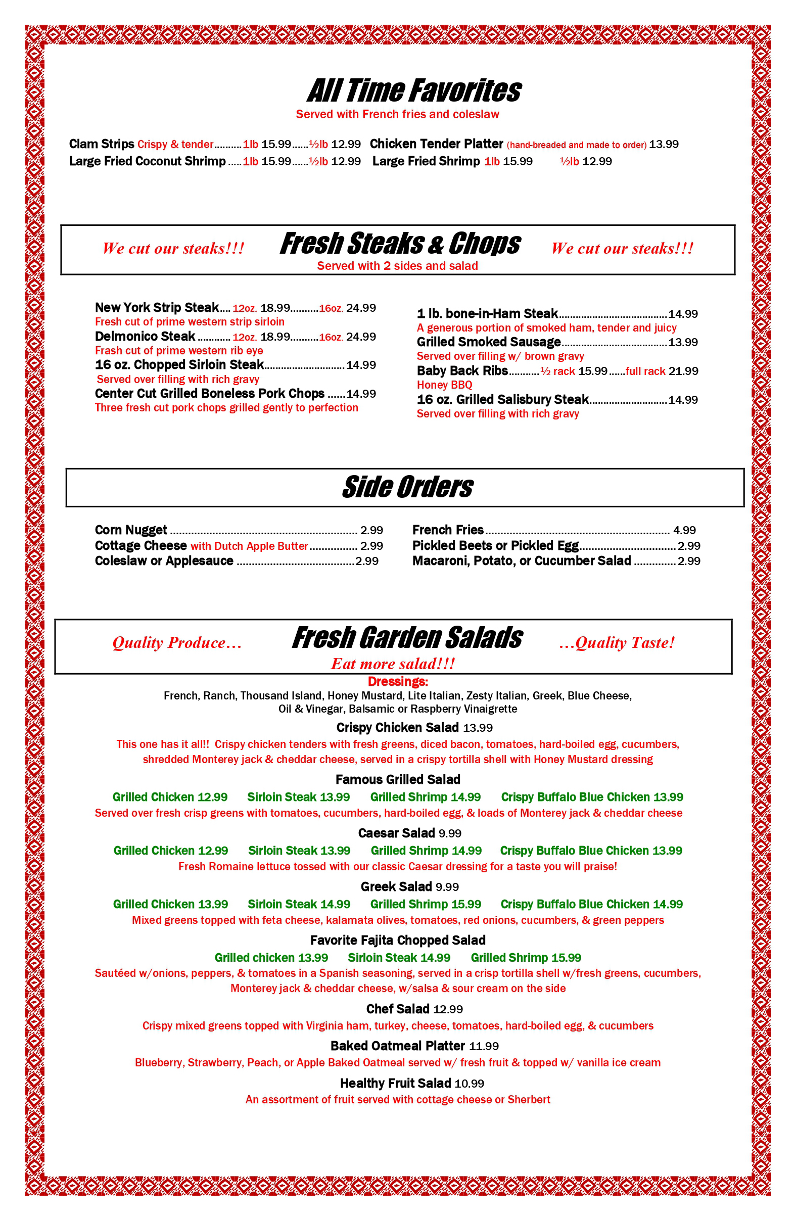 Knight Day Diner Menu
