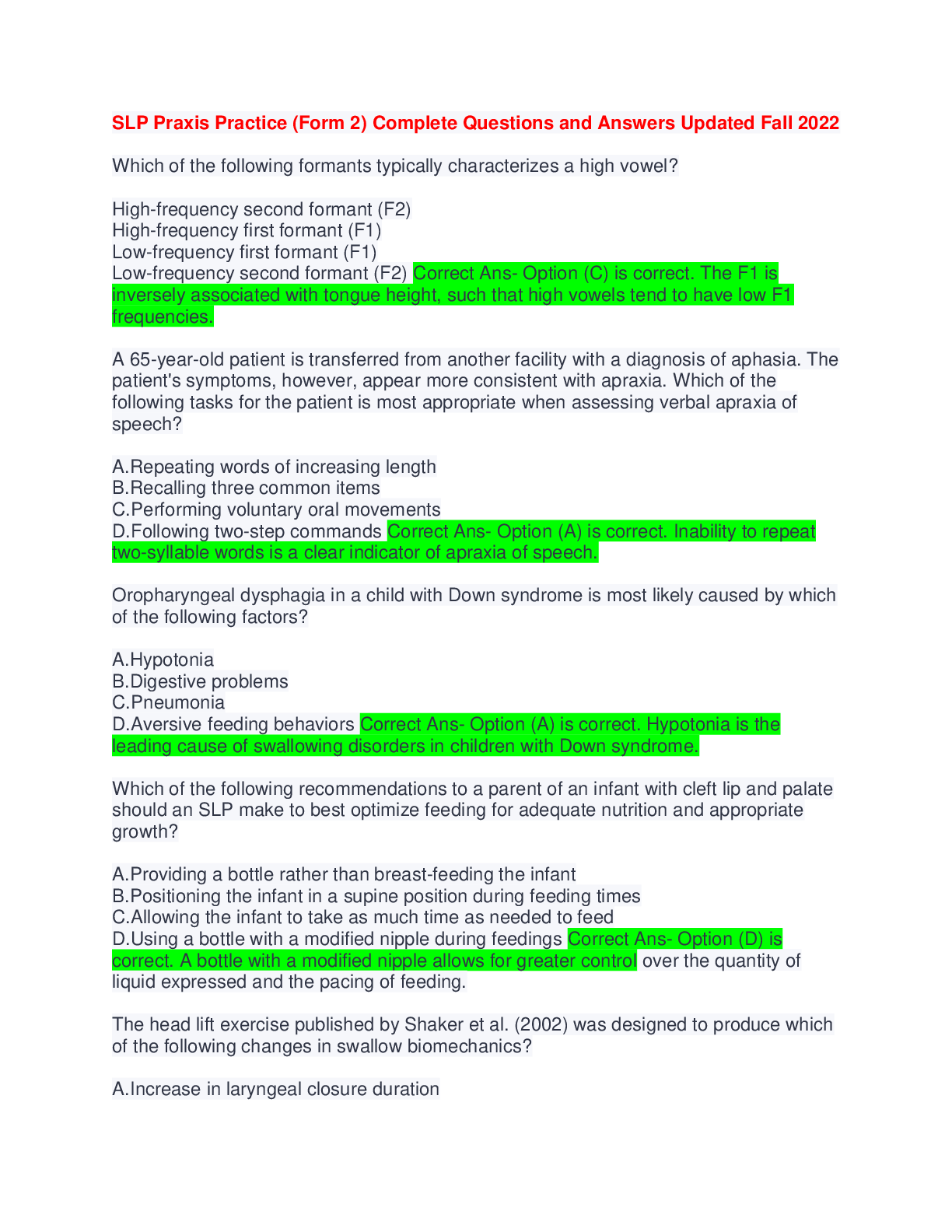 Slp Praxis Question Of The Day