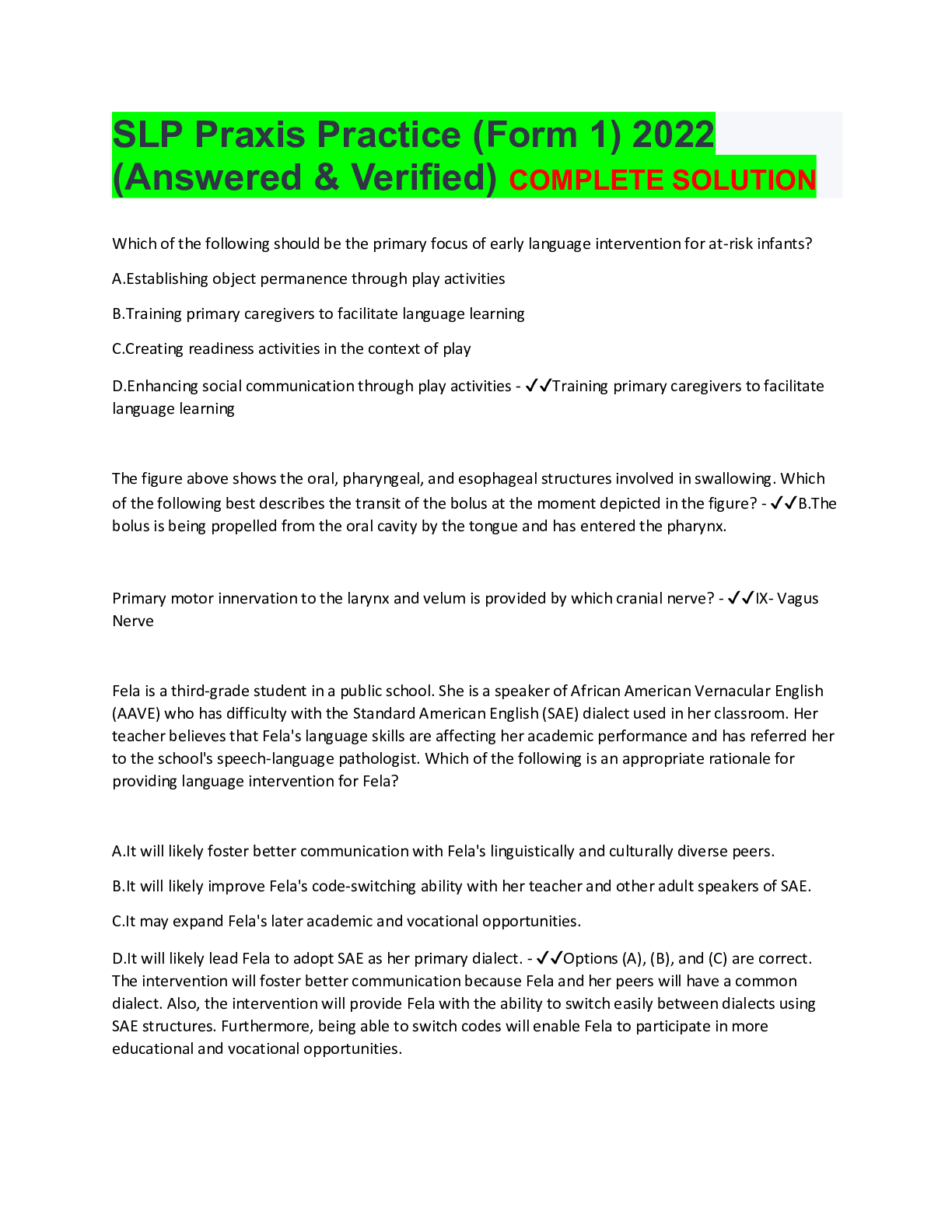 A speech language pathologist will receive compensation for utilizing a specific brand of thickener in her private practice. Here are the questions that have been asked daily from dr. Candea, relating to the praxis exam. Praxis question of the day 5.0 (6 reviews) get a hint a child who says things like kek/tek shows that she is using the pattern.